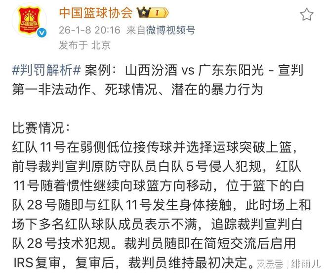 从比赛过程来看,天津队一度领先山西队两位数。但是,山西队主场在第四节比赛中似乎得到了裁判的“保送”。最终,天津队在一度领先的情况之下被逆转。与此同时,此前晋粤大战的裁判报告结果也正式出炉。在中国篮协的官宣之下,山西队外援迪亚洛对于广东队新人陈家政的肘击犯规也终于真相大白。据悉,中国篮协确认了在此前的晋粤大战中,山西队外援迪亚洛肘击广东队的新星陈家政是违体犯规。这次犯规导致陈家政受伤到底久久不能缓过来,而广东队主教练杜锋更是申请了回放。