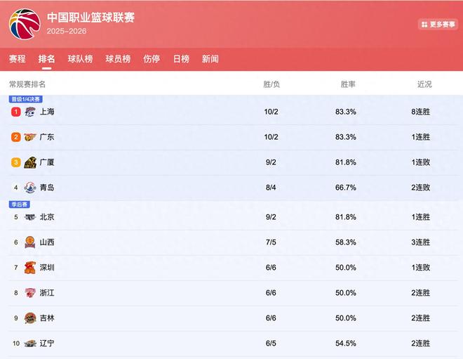 目前CBA常规赛正在进行中,结束了最新的一天比赛之后,CBA排行榜再度迎来了更新,我们来详细了解一下最新的排名竞争情况。