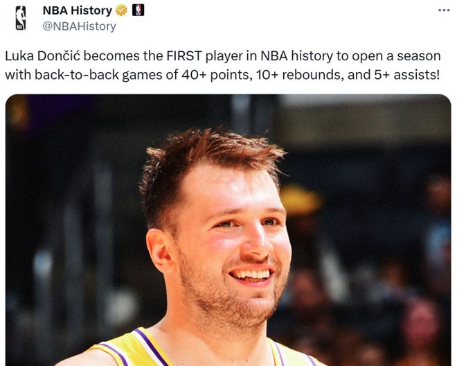 对于首战惨败的湖人队来说,东契奇这样的表现自然是巨大的利好,但并不让人意外。