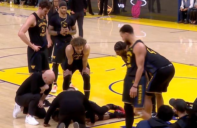 大通中心球馆内一片哗然,队友们迅速围拢过来,巴特勒则在地上躺了好几分钟。最终,他在众人搀扶下起身,被缓缓送回更衣室,伤腿全程无法承重。即便如此,他还笑着和身旁的裁判调侃,自己应该获得两次罚球机会。