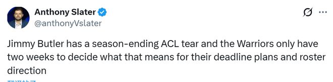 北京时间1月20日,金州勇士的球星巴特勒右膝前交叉韧带撕裂,遭遇赛季报销级重伤。这一突发状况,也让这支球队的未来发展方向彻底蒙上了一层迷雾。勇士队记Slater带来了关于此事的更多报道——