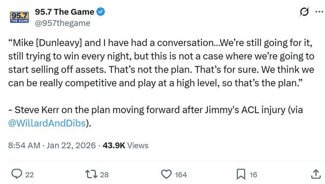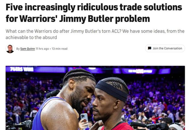 甚至库里也因为如今糟糕的局面陷入交易流言之中,《cbssports》的Sam Quinn更是坦言勇士队在巴特勒报销后球队未来调整空间被锁死,如果库里想要争冠,离开是最好的选择。