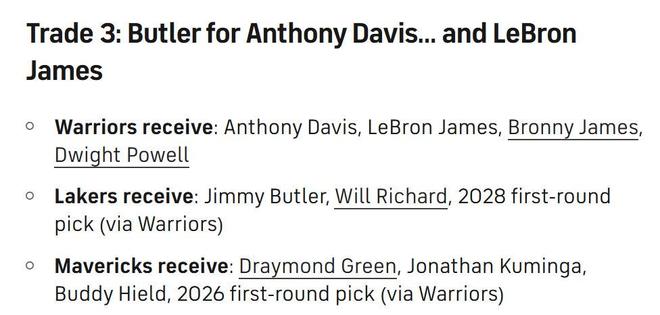 湖人得到:巴特勒+理查德+28年首轮;