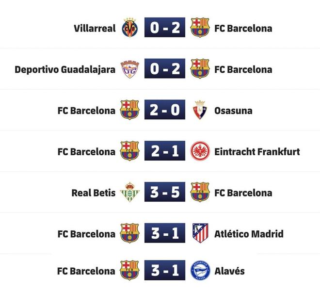 巴塞罗那用一场2-0的胜利结束了2025年各项赛事比赛任务,弗里克的球队在12月份各项赛事6场比赛中全部取胜,算上11月份最后一场比赛3-1击败阿拉维斯,巴萨已经取得7连胜。