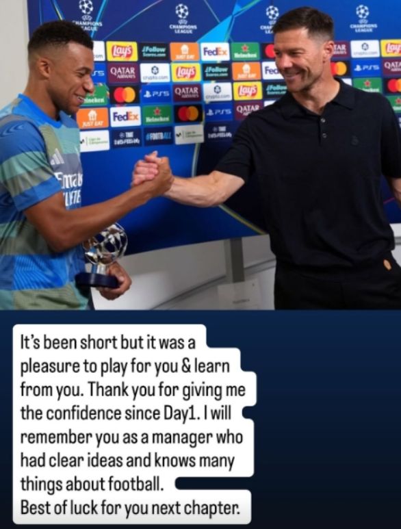 当然,这样的剧本走向就连姆巴佩也看懂了,尽管在阿隆索的战术体系中,姆巴佩是头号核心,而且在阿隆索下课后,这位法国前锋在社交媒体上表示:“虽然时间短暂,但能为您效力并向您学习,我感到非常荣幸。感谢您从一开始就给予我的信任。我会永远记住您是一位思路清晰、对足球了如指掌的教练。祝您在人生的下一个阶段一切顺利。”看上去姆巴佩对阿隆索的下课黯然神伤,其实人生如戏、全靠演技。一个非常值得注意的细节是:昨晚巴萨给皇马列队,皇马领完奖,阿隆索让大家给巴萨列队,姆巴佩挥手不去让大家都走,也就是说,公开抵制阿隆索的,恰恰就是姆巴佩。