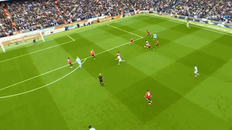 第18分钟,罗德里前场直传,多库右路强行突破,下底传中被乌加特封堵,随后再次起球传中,福登门前头槌破门,1-0!