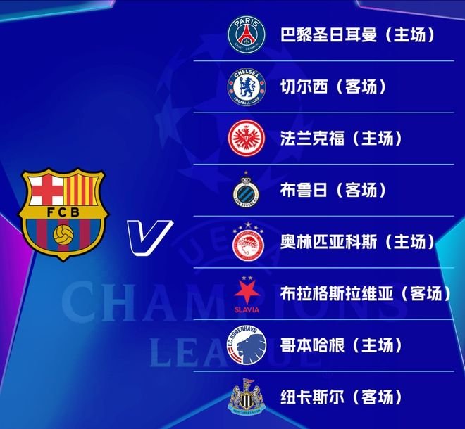 经过抽签,巴萨的八个对手分别为拜仁(客)、巴萨(主)、本菲卡(主)、亚特兰大(客)、阿贾克斯(主)、那不勒斯(客)、帕福斯(主)、卡拉巴赫(客),以及纽卡斯尔的八个对手分别为巴萨(主)、巴黎圣日耳曼(客)、本菲卡(主)、勒沃库森(客)、埃因霍温(主)、马赛(客)、毕尔巴鄂竞技(主)、圣吉罗斯(客)。
