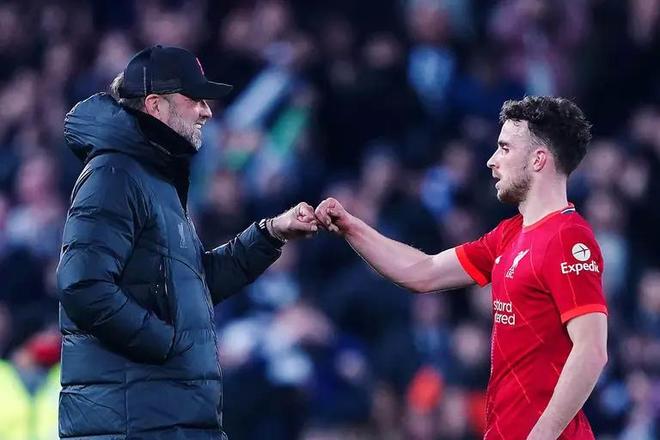 这种影响贯穿了我执教俱乐部的整个时期——甚至在我离开之后也是如此。在最重要的时刻,在我们最需要他的时候,他一次又一次地挺身而出。今年四月,他对阵埃弗顿打进制胜球时,我是在家里的客厅里庆祝的,但那种感觉,就像我站在KOP看台上一样。那是一个决定冠军归属的瞬间。如今,它已成为一个永恒的瞬间,与俱乐部悠久历史中那些最重要的时刻并列。我一直说,作为一名进攻球员,你同样必须参与防守——而迪奥戈在这方面做得无比出色。他会为每一个球而拼尽全力,疯狂地逼抢。然后在下一秒,他又会给你一个微笑,一次握手,或者在走廊里开一个小小的玩笑。